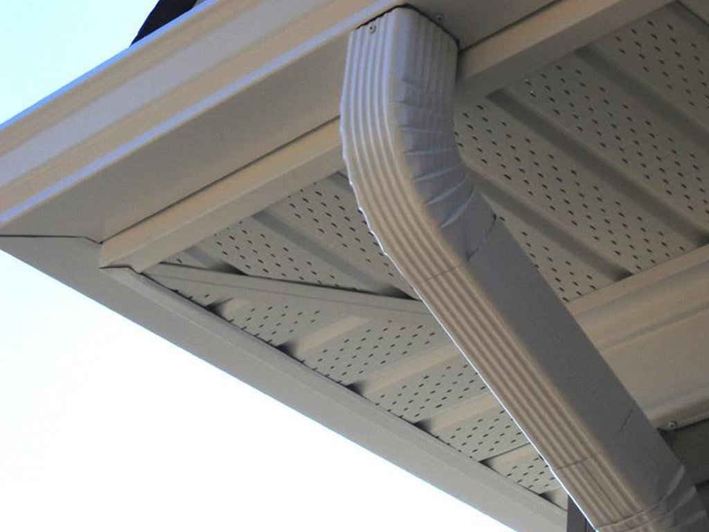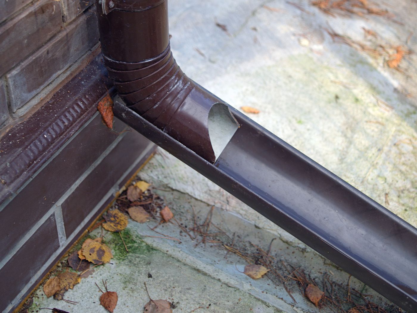 Roof gutter repair. Guttering repair. Roofer contractor repair house rain gutter pipeline.